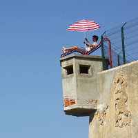 Construction du projet Prisao Break. Cette installation conçue autour du thème de l'évasion combine une chaise longue et une échelle. Exposée sur le mirador d'une ancienne prison au Portugal, elle invite à questionner le lieu et sa potentielle réinvention.